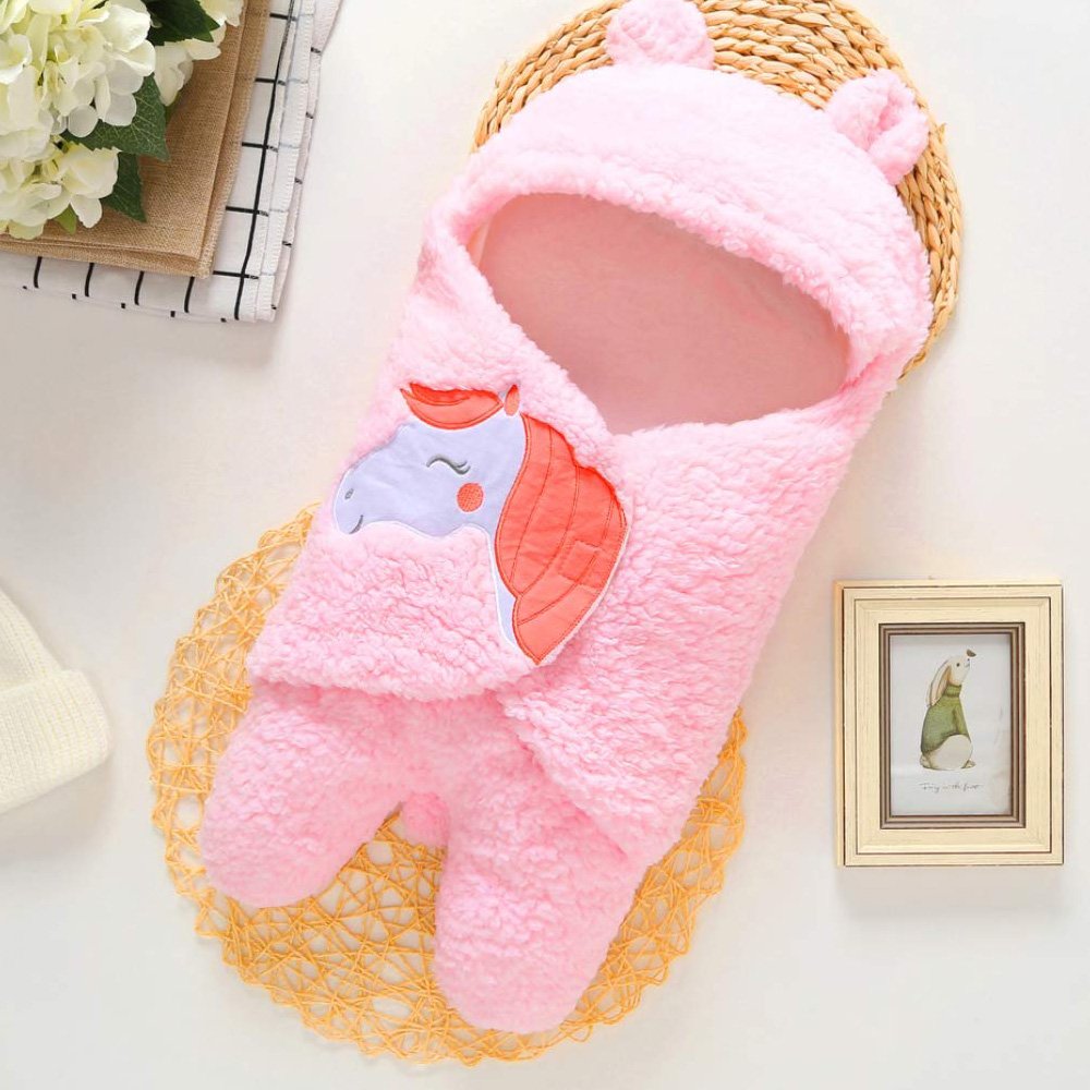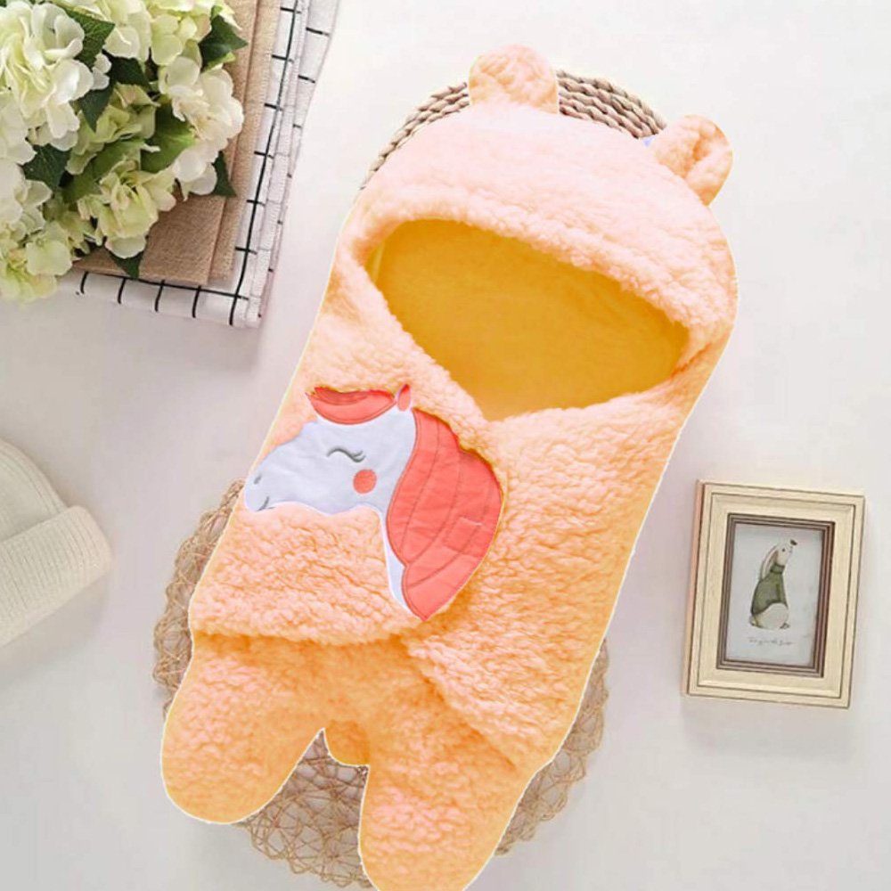 There is a hooded design added to the blanket that adds a cartoon theme to it. The hooded design can be worn around the baby’s head for a cosy tuck. There is a special swaddle design provided for the baby’s feet too.